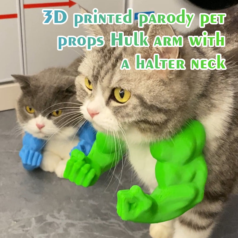 3D Printed Parody Pet Prop – Hulk Arm with Halter Neck for Quirky Feline Style 💪🐱