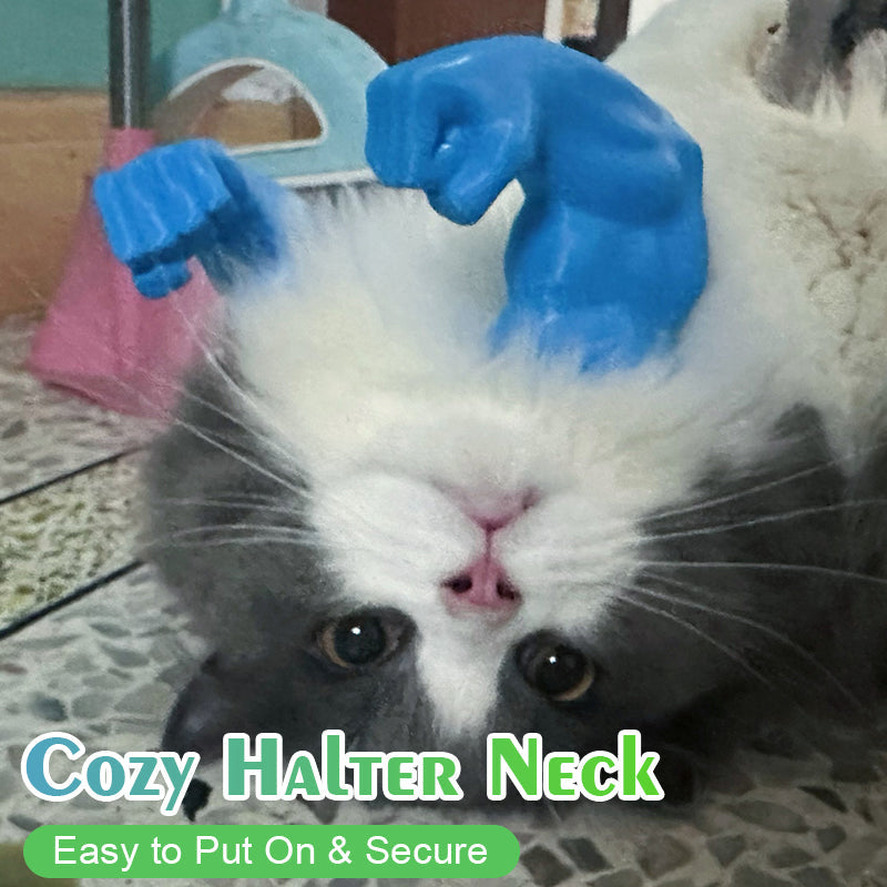 - Halter-style fit for safety: The integrated halter neck is soft, adjustable, and designed to sit comfortably around your cat’s neck (no tight straps or restrictive parts). It keeps the Hulk arms positioned correctly without bothering your pet.
